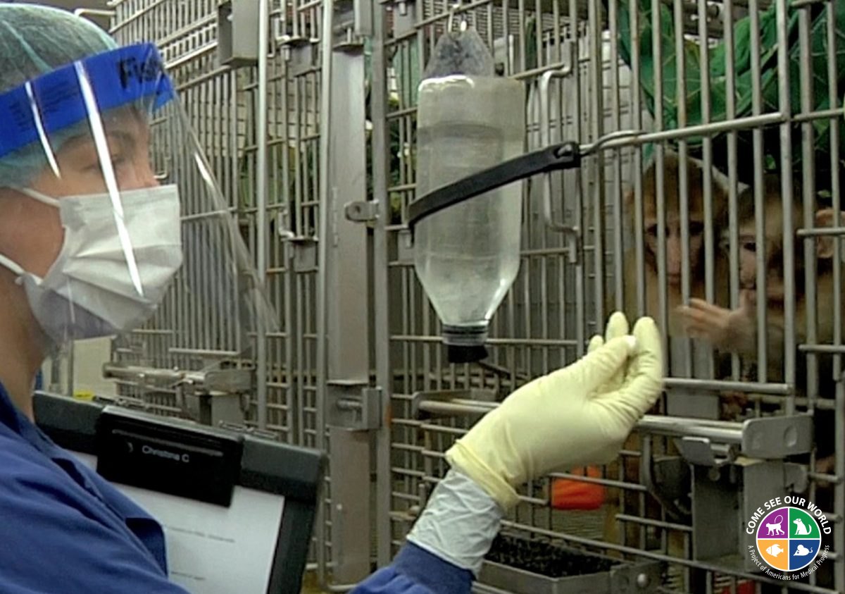 Environmental enrichment is an important part of caring for research animals. Research animals are provided with several types of enrichment to stimulate species-typical behaviors. These juvenile rhesus macaques are enjoying mini marshmallow treats. Interactions with their caregiver give them social and intellectual stimulation, while strengthening their bonds with each other. Treats are also hidden in toys to stimulate the natural foraging drive in these animals. And they are socially housed, which is critical for these troop animals.