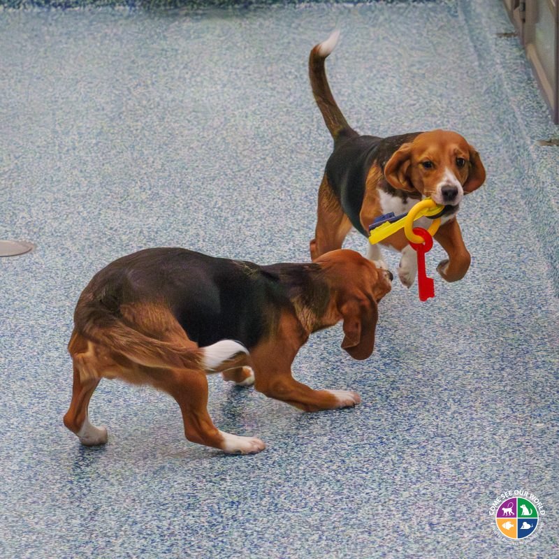 Dogs play an important role in developing new medicines for heart conditions. In these studies, they wear special jackets that hold small telemetry devices to continuously track heart rate, blood pressure, and ECG activity. This real-time monitoring helps scientists understand how a new heart drug affects the cardiovascular system—without repeated handling or added stress. Each dog is closely observed by veterinary professionals, and if any health concerns arise, they receive immediate care. These animals are helping researchers develop safer, more effective treatments for heart disease that could one day help both people and pets. All dogs involved in research studies are provided with high standards of care. This includes time to socialize and play with other dogs as well as their human caregivers.